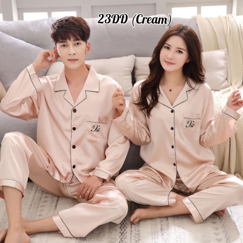 Adastock Couple Piyama Pijamas Lengan Panjang Satin Silk Baju Pasangan Baju Tidur Lazada Indonesia